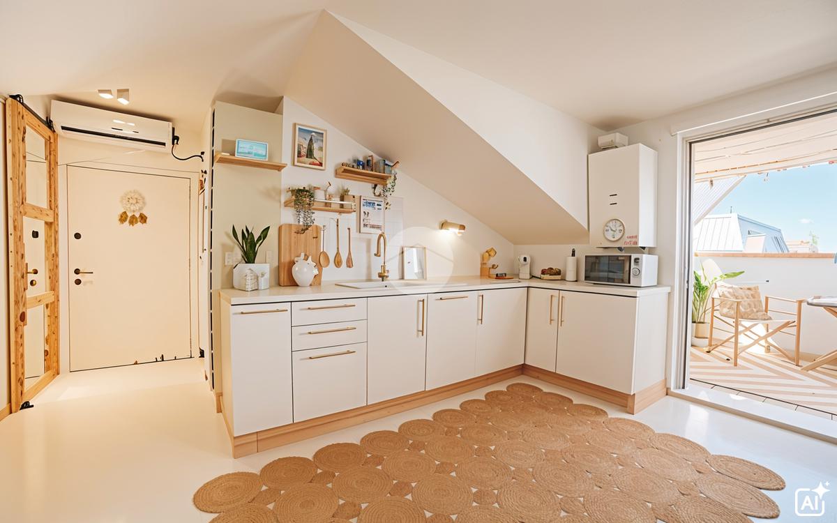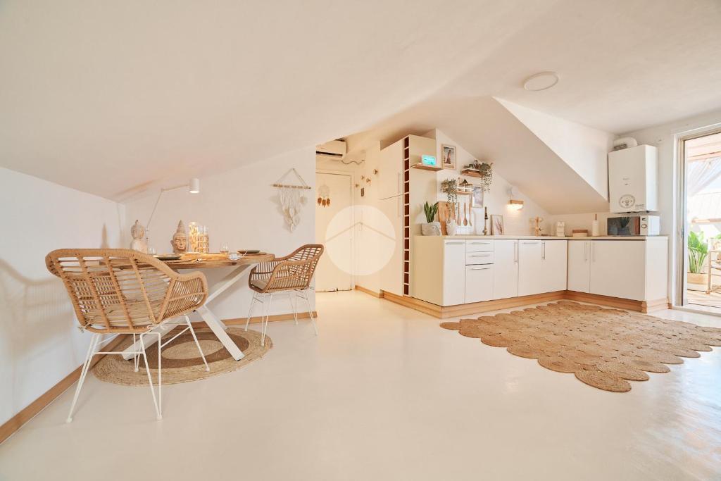 La zona giorno, luminosa e ben organizzata, rappresenta il cuore della casa: ideale per rilassarsi o accogliere ospiti in un ambiente moderno. È presente un angolo cottura con piano a induzione, pratico e perfettamente integrato nel living.