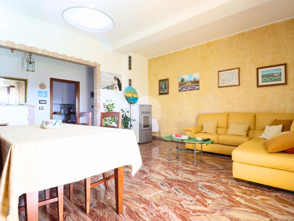 L'abitazione si apre su un grande salone luminoso e accogliente, cuore della casa, dal quale si accede direttamente a una splendida terrazza panoramica. Da qui si gode di un belvedere unico, capace di regalare scorci spettacolari sul mare Adriatico e sulle cime della Majella, un panorama che incanta in ogni stagione e accompagna la quotidianità con un senso di serenità e bellezza.