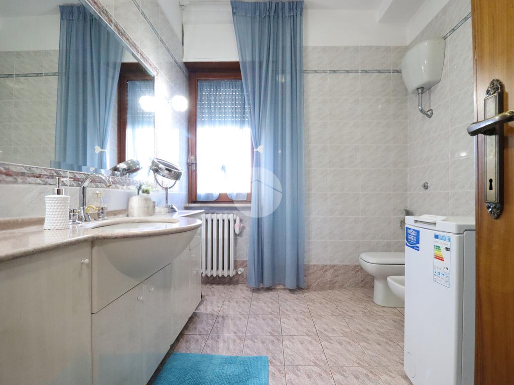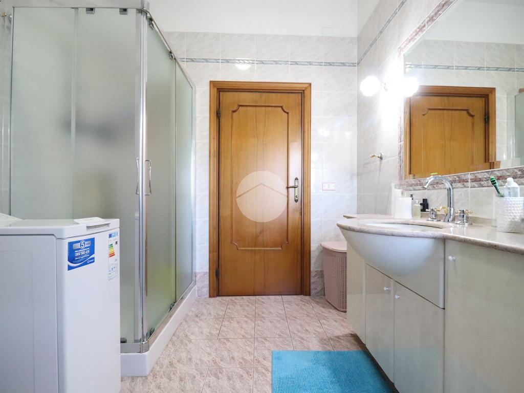 La zona notte ospita tre camere da letto, comode e ben distribuite: una dispone di bagno privato, mentre un secondo bagno, ampio e finestrato, serve le restanti stanze con praticità e comfort.