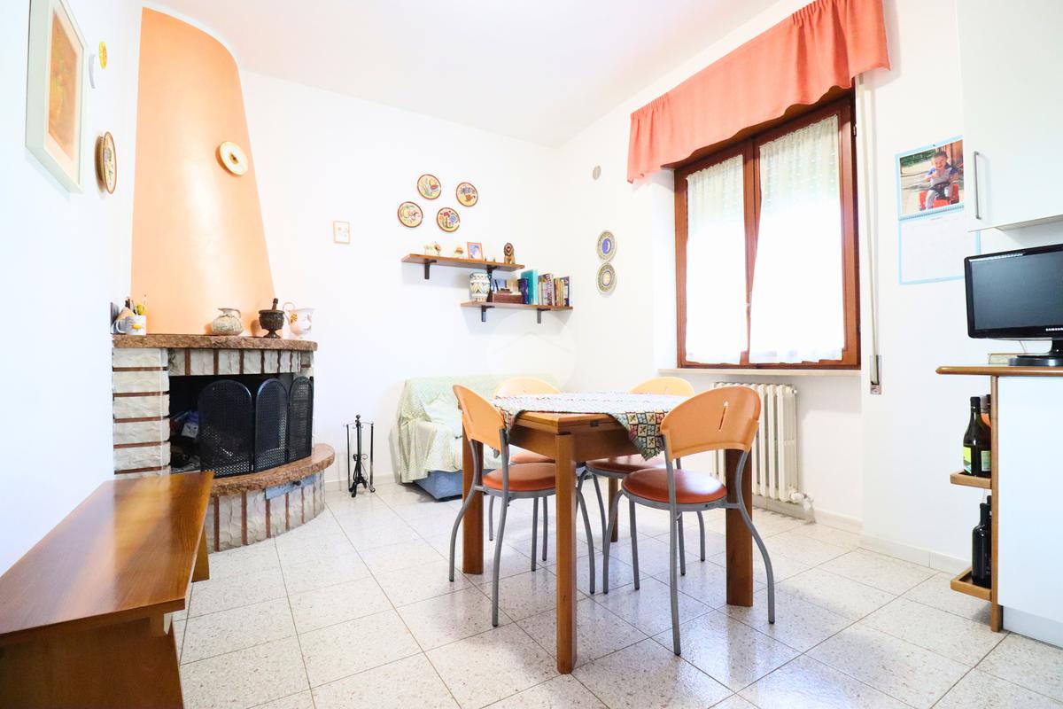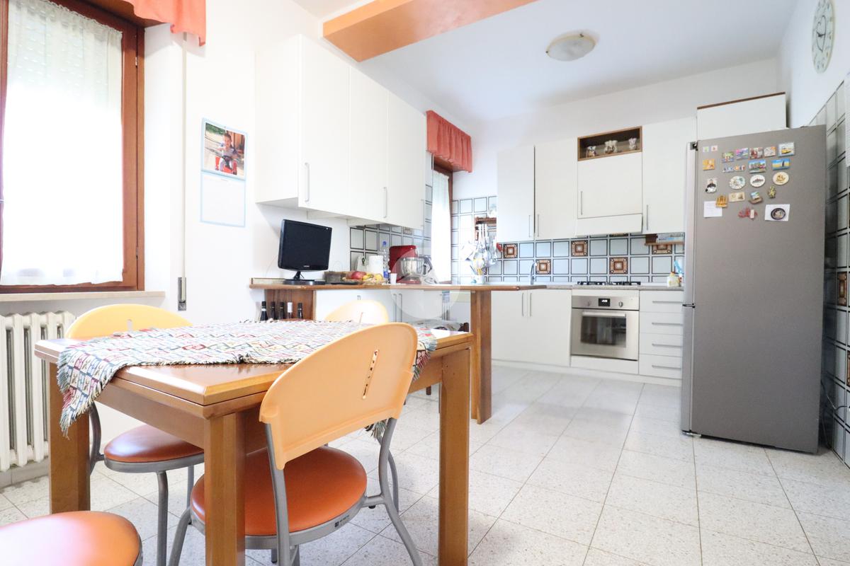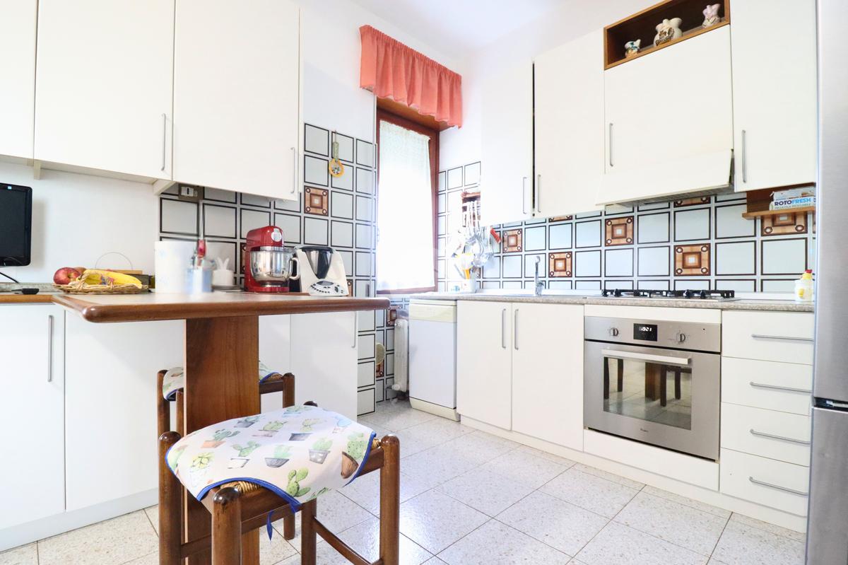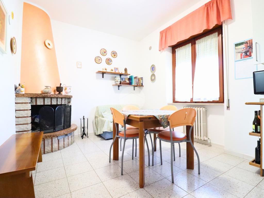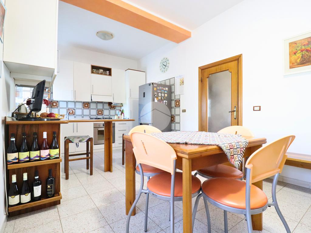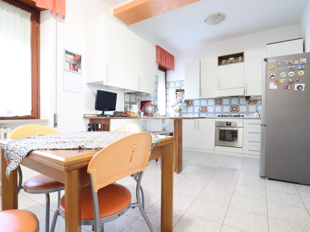 La cucina abitabile, spaziosa e funzionale, è arricchita da un camino che dona calore e atmosfera, rendendola perfetta per la vita familiare e per chi ama la convivialità domestica.