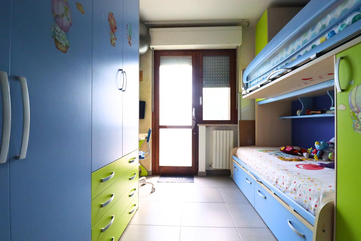 L'appartamento è composto da un accogliente soggiorno che dialoga armoniosamente con l'angolo cottura, pensato per ospitare pranzi e cene in famiglia. La zona notte è ben distribuita e include una luminosa camera matrimoniale e una cameretta versatile, perfetta come stanza per bambini, studio o ambiente per gli ospiti. La presenza di due bagni, entrambi finestrati, uno principale e uno più piccolo di servizio, garantisce comfort e praticità nella gestione della vita quotidiana. Completa la disposizione interna un comodo ripostiglio, utile per organizzare al meglio gli spazi.