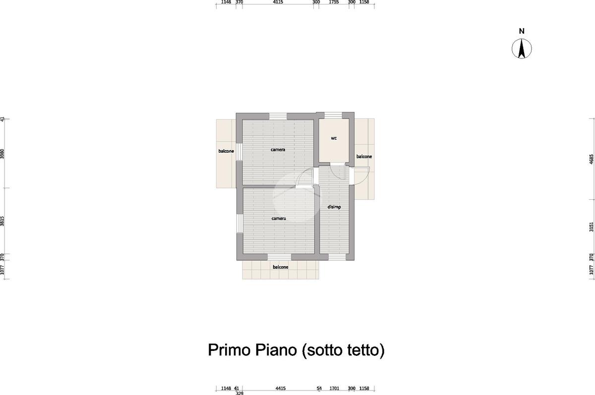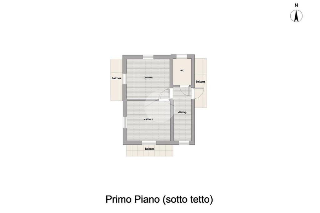 Il primo piano ospita una seconda zona notte, con due camere dotate di balcone privato affacciato sulle colline, un bagno finestrato e un disimpegno che conduce a un terzo balcone, rendendo il piano luminoso e piacevolmente arioso.