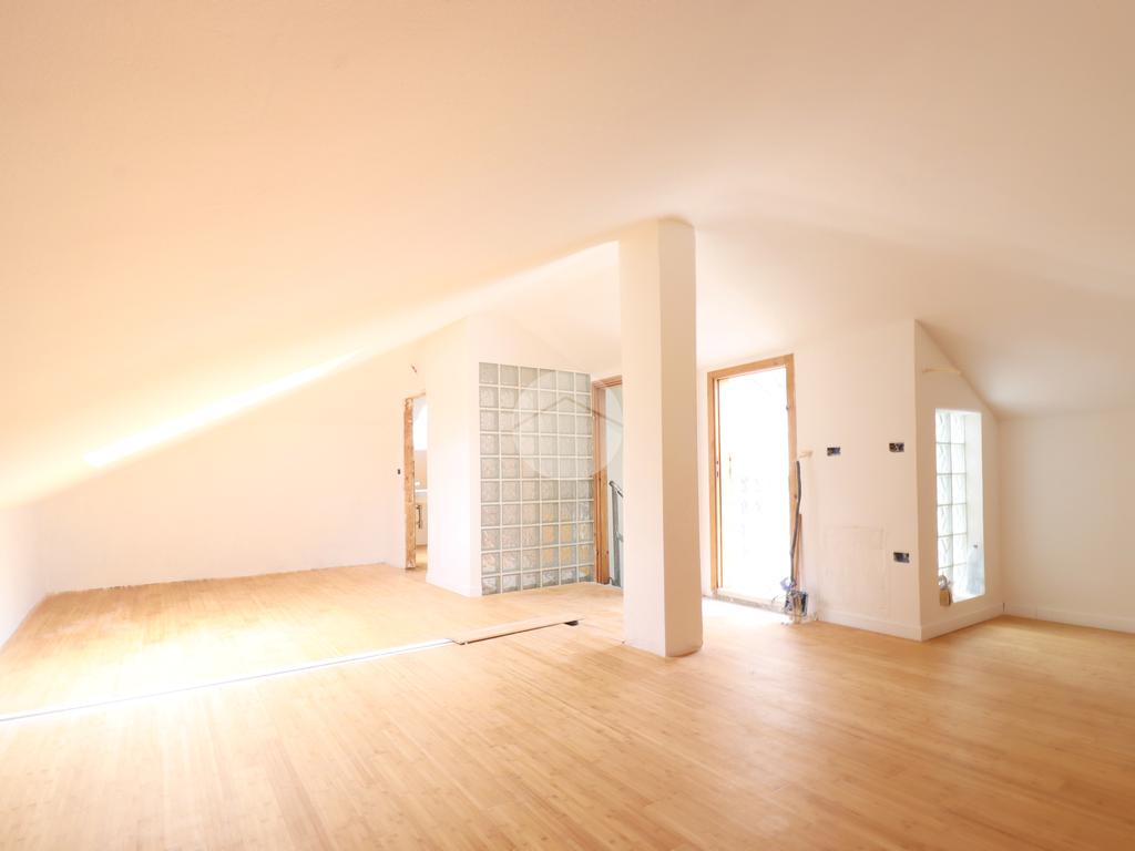 Al primo piano troviamo una luminosa zona giorno con cucina e bagno. La scala interna collega il piano mansardato, dove troviamo uno spazioso open space con bagno e terrazzo con vista panoramica, ideale per i momenti di relax.
