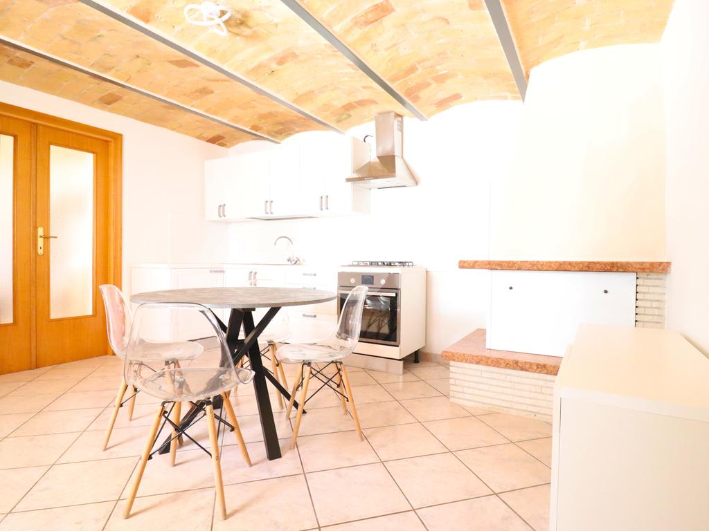 L'ingresso conduce direttamente nella zona giorno, composta da una cucina abitabile e un adiacente soggiorno, entrambi caratterizzati da un elemento architettonico di grande impatto: i soffitti in volta catalana, presenti in entrambi gli ambienti. Questo dettaglio unico regala calore e personalità agli spazi, con le curve eleganti delle volte e il mattone a vista che richiamano la tradizione, creando un'atmosfera accogliente e ricercata.